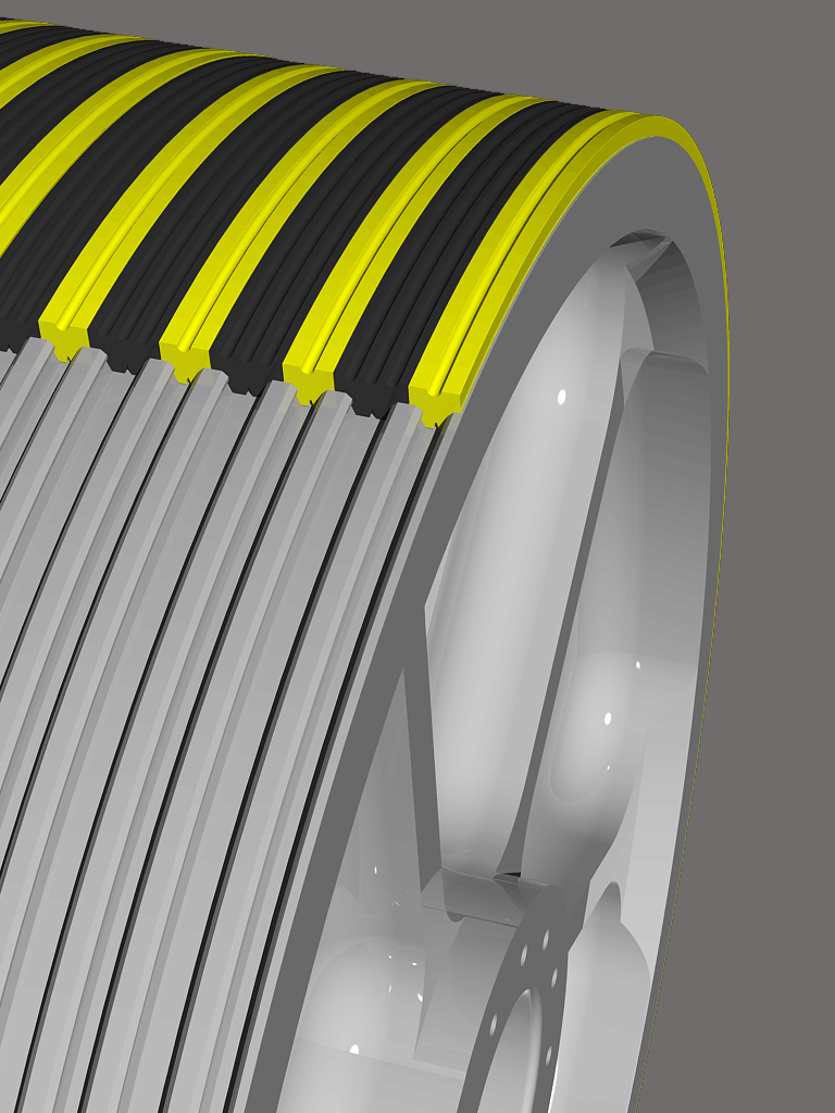 Perfis em TPU para para revestir as rodas e cilindros das Máquinas Multifios